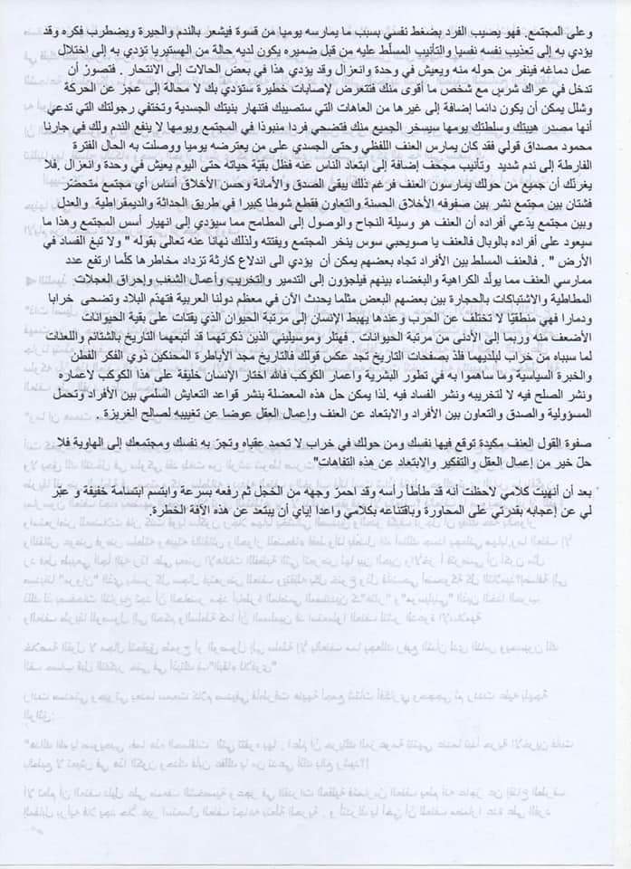 “كلامك صحيح يا أحمد ربما التغيير يبدأ منا نحن الأفراد إذا عمل كل واحد منا على تعزيز قيم التسامح والسلام في محيطه، يمكننا أن نصنع فارقًا.” من شواغل عالمنا المعاصر