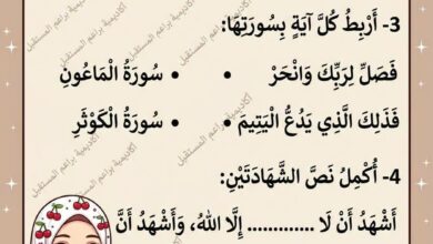 امتحانات التربية الاسلامية السنة الأولى الثلاثي الثالث
