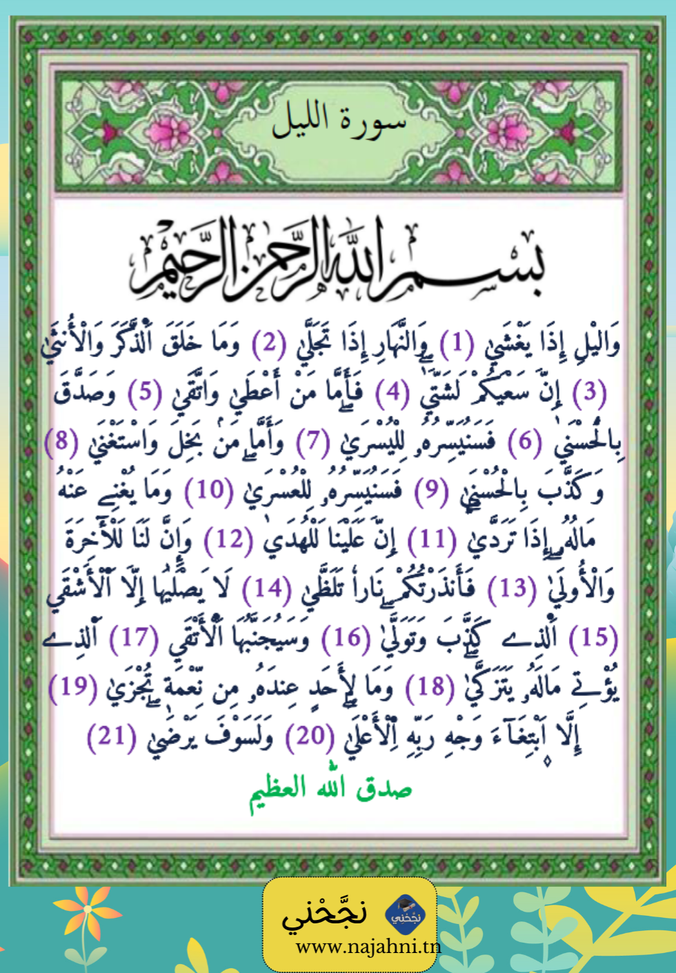 يمكنكم تحميل سورة الليل حسب رواية قالون للسنة الثالثة ابتدائي بصيغة pdf برابط تحميل مباشر من الموقع التربوي نجحني.