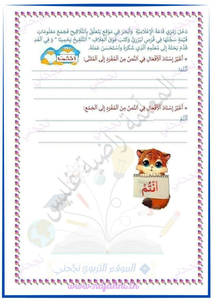 ضمائر المتكلم تمارين مع الإصلاح- قواعد لغة – السنة الثالثة ابتدائي