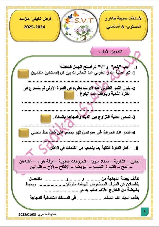 العودة لصفحة فروض تأليفية عدد 3 في علوم الحياة و الأرض للسنة 8 أساسي