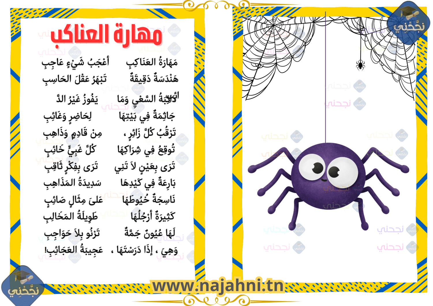 محفوظات مهارة العناكب. محفوظات من الكتاب المدرسي القراءة للسنة الرابعة ابتدائي. ستجدون المحفوظات مقدمة ب3 أنواع مختلفة وبصيغة pdf أو كصور.