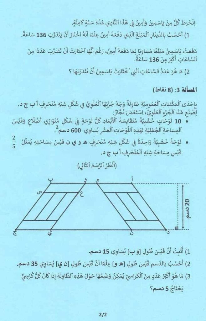 مناظرة مادة الرياضيات مع الإصلاح السنة السادسة نموذجي – سيزيام 2024