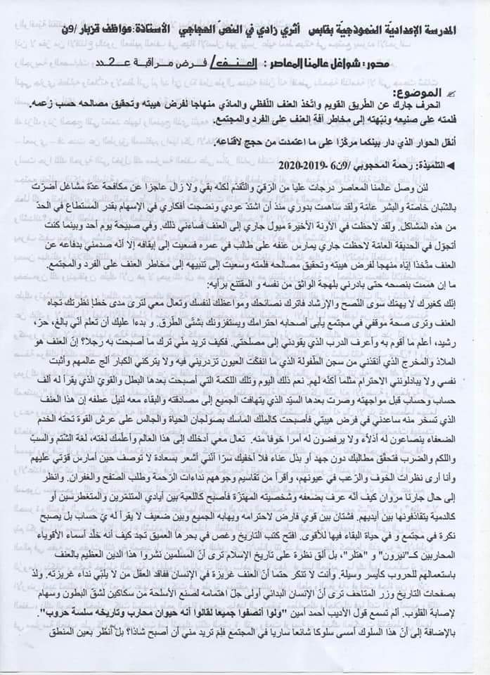 موضوع حجاجي محور من شواغل عالمنا المعاصر التاسعة أساسي