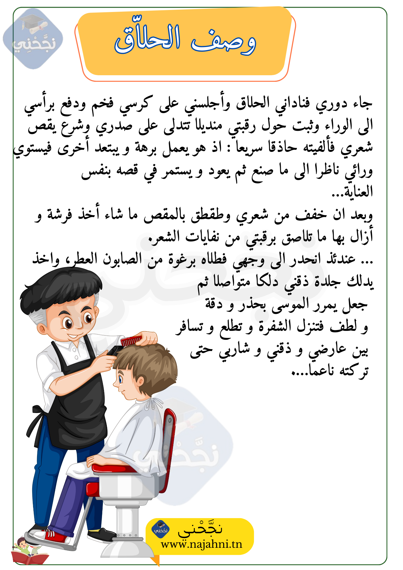 وبعد ان خفف من شعري وطقطق بالمقص ما شاء أخذ فرشة و أزال بها ما تلاصق برقبتي من نفايات الشعر.