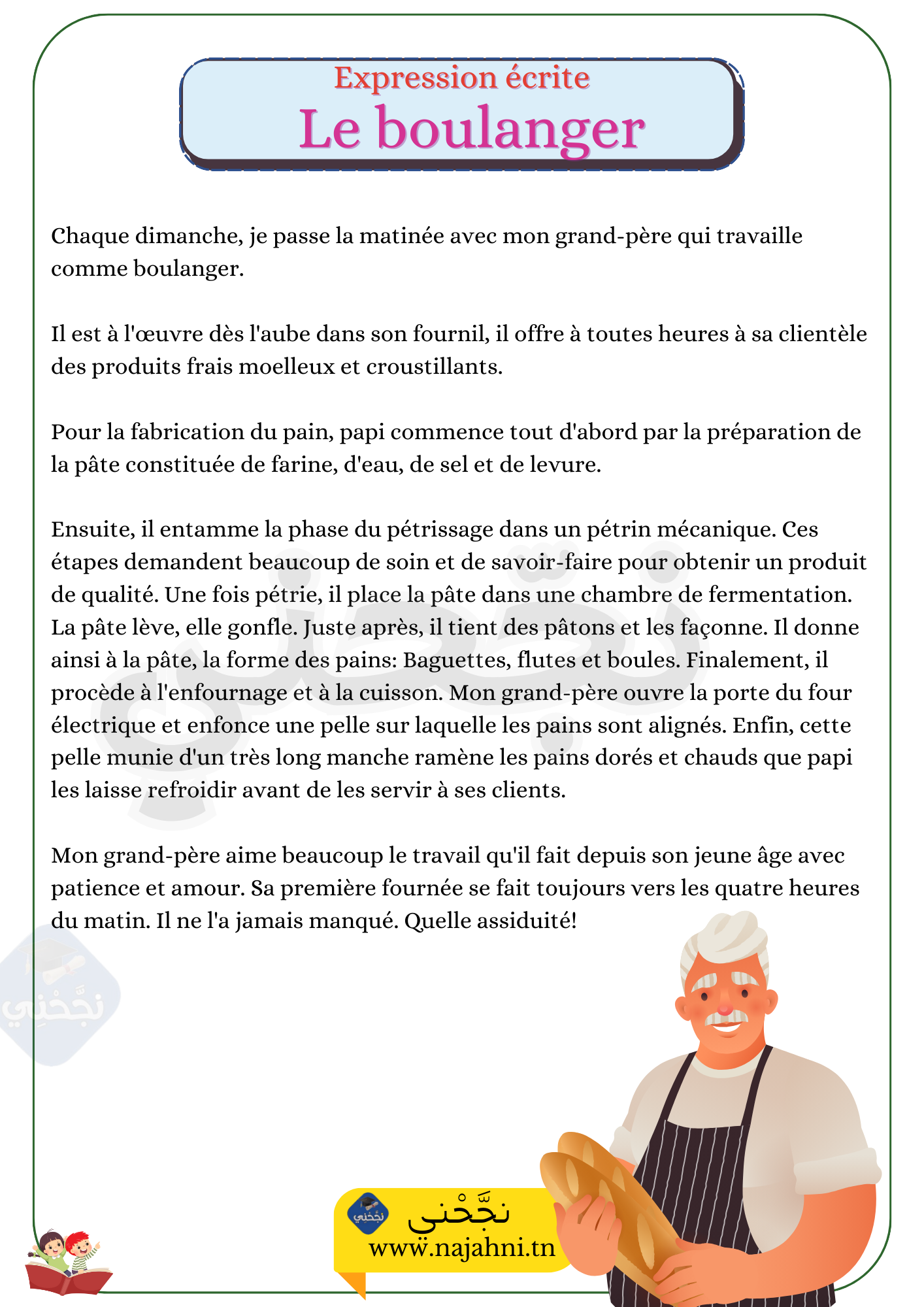 Chaque dimanche, je passe la matinée avec mon grand-père qui travaille comme boulanger.